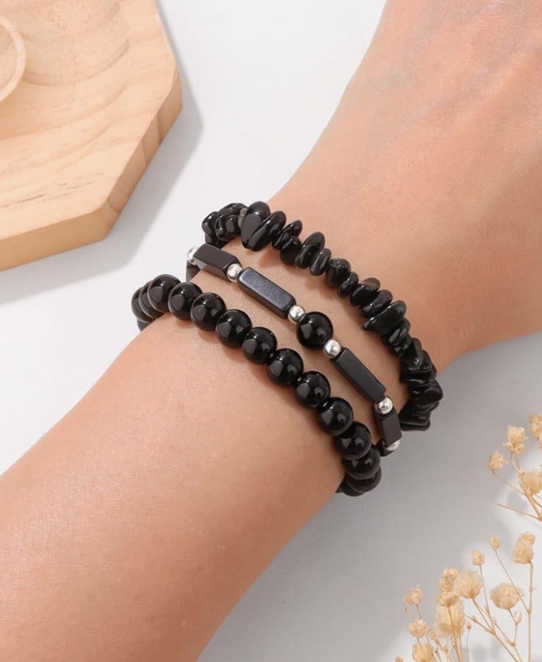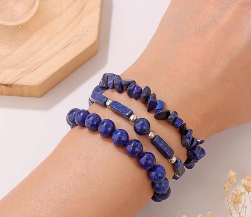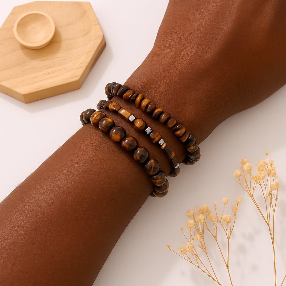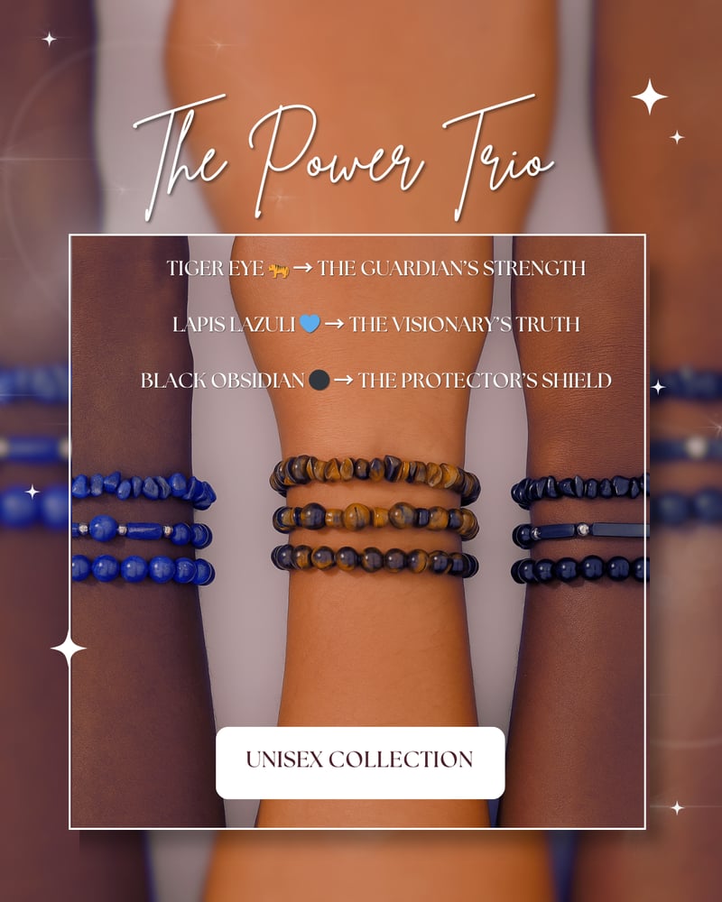 Featuring Tiger Eye for strength 🐅, Lapis Lazuli for wisdom 💙, and Black Obsidian for protection ⚫.